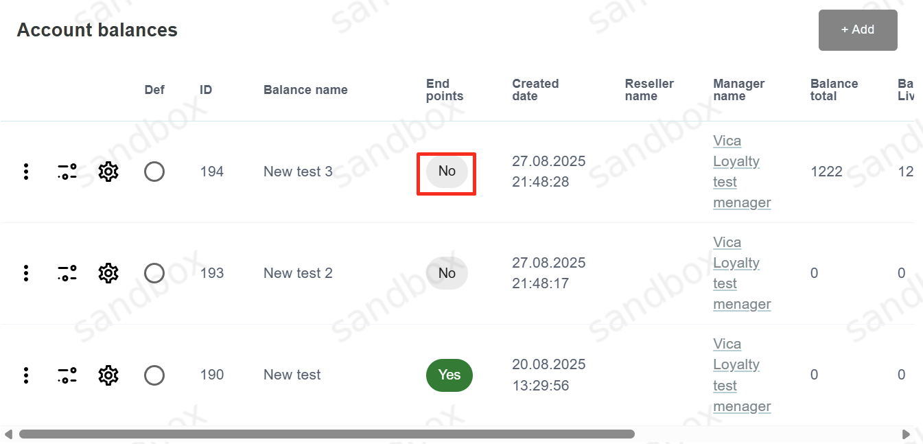 There is possibility to selecting one or more endpoints for each balance, according to which balance will be calculated.