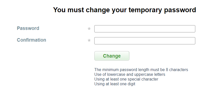 Upon initial access to Wiserpay UI, after logging in, the Merchant employee will be asked to create and enter a new password.